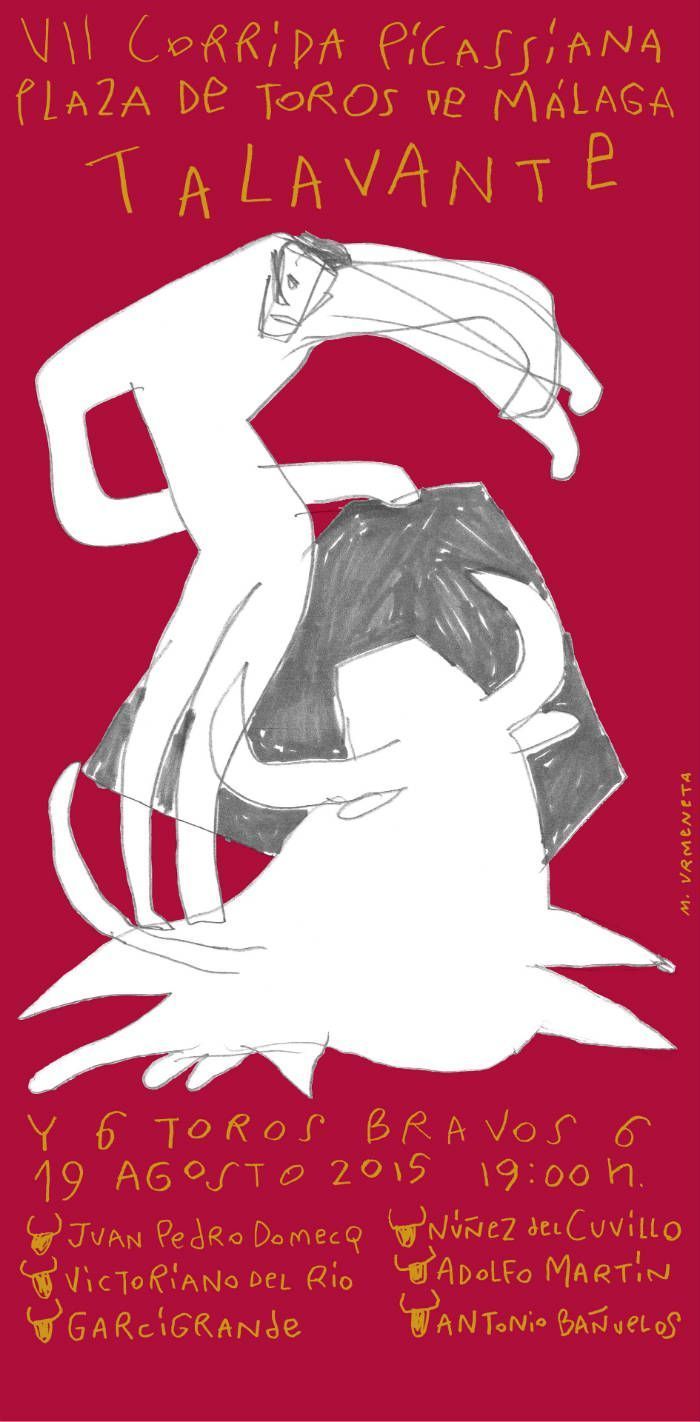 El artista Mikel Urmeneta es el autor del cartel de la corrida Picassiana que se celebrará en Málaga el 19 de agosto y en la que Alejandro Talavante lidiará seis toros de distintas ganaderías. Mikel urmeneta ha querido representar al diestro realizando una de sus arrucinas imposibles. El boceto, dibujado a lápiz, describe la locura y el control, la inteligencia y el instinto, la improvisación y la elegancia. En definitiva, «el arte inclasificable y único de Alejandro Talavante».